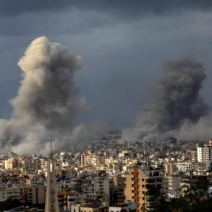 11月25日,在黎巴嫩首都貝魯特南郊,以軍空襲現場升起濃煙。新華社發