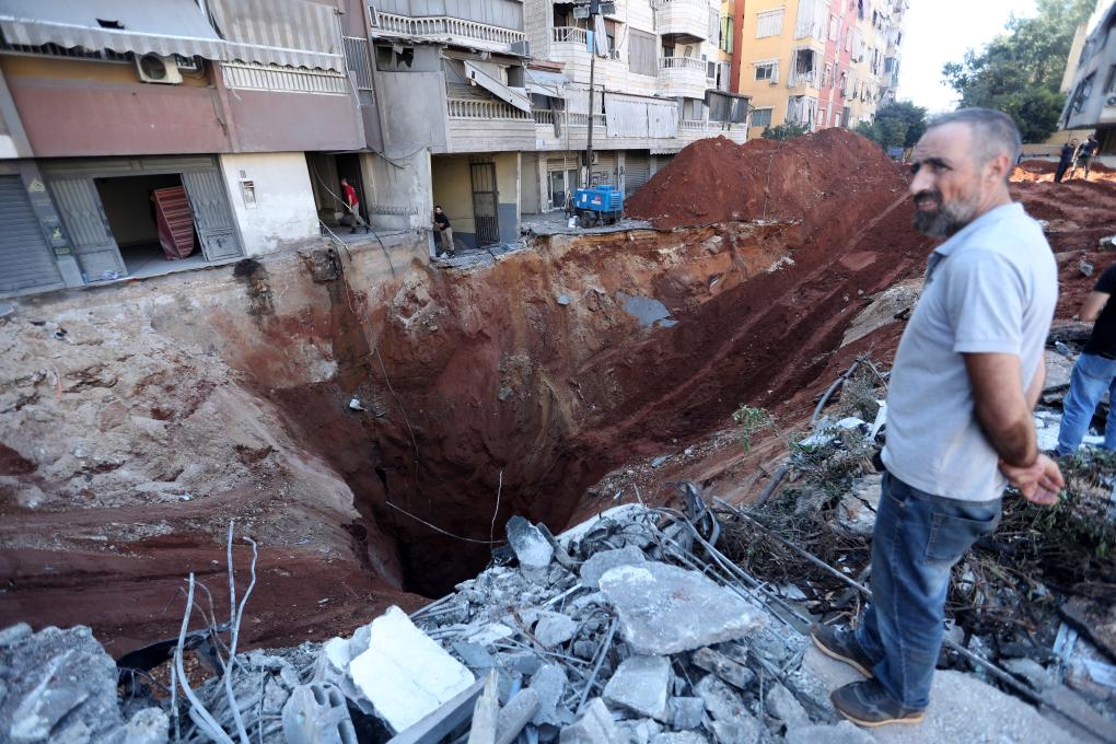 這是2024年9月27日,以色列以黎巴嫩真主黨領導人納斯魯拉為目標,對貝魯特南郊發起的一次空襲。被攻擊區域的6棟居民樓瞬間被夷為平地,爆炸留下巨大深坑,猶如大地被撕裂的傷口。
