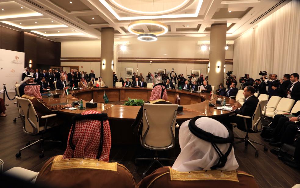 這是12月14日在約旦亞喀巴拍攝的敘利亞問題阿拉伯部長級聯絡委員會會議現場。新華社發(穆罕默德·阿布·古什攝)