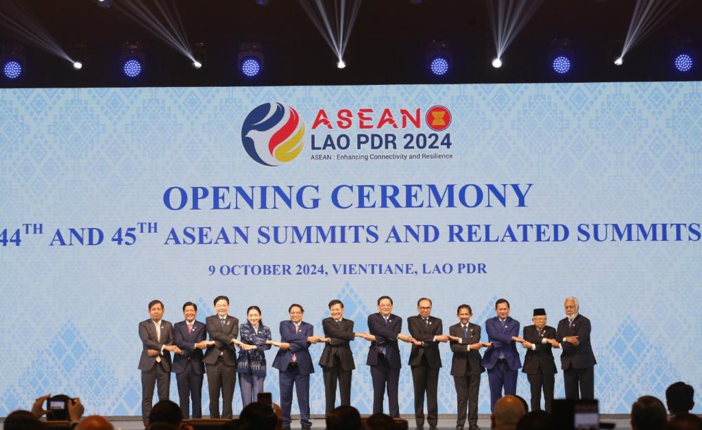這是10月9日在老撾首都萬象拍攝的第44屆和第45屆東盟峰會開幕式現場。新華社發