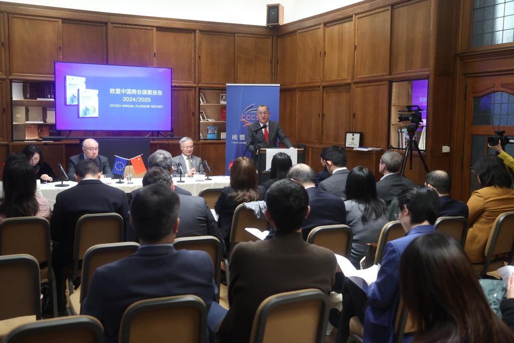 12月9日,在比利時首都布魯塞爾,歐盟中國商會與咨詢公司羅蘭貝格共同發布2024至2025年度旗艦報告。新華社記者趙丁喆攝