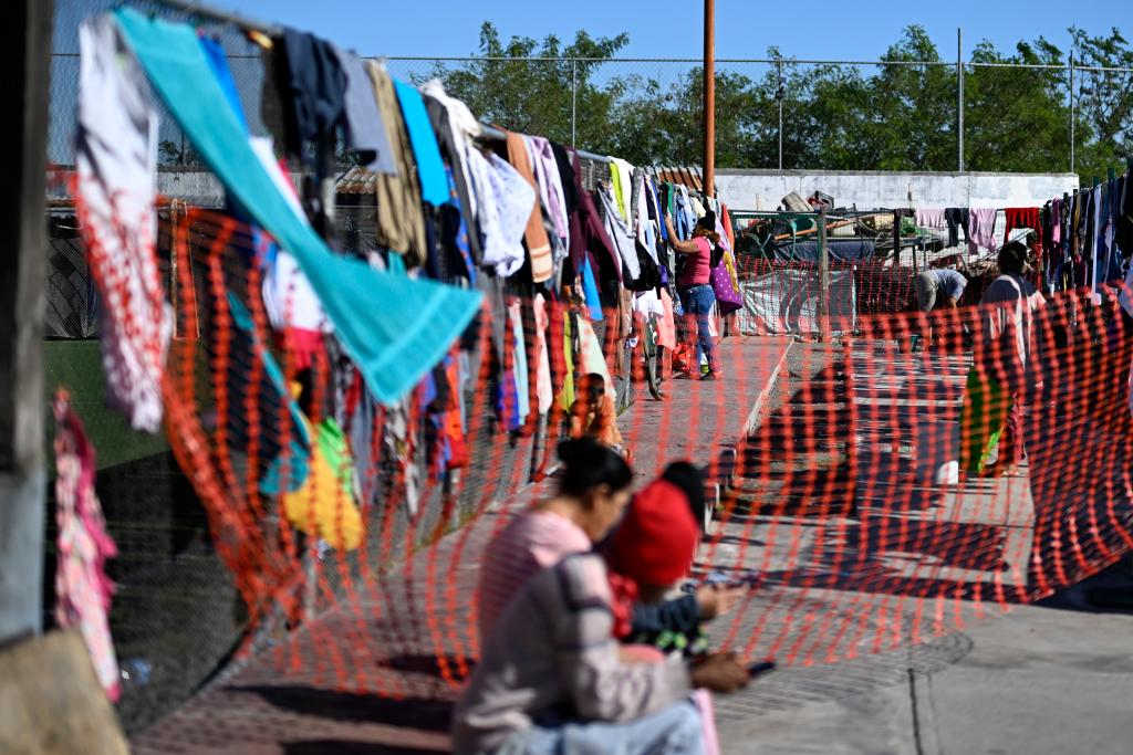 12月11日,在墨西哥邊境城市雷諾薩的一處移民收容所里,人們晾曬衣物。新華社記者李木子攝