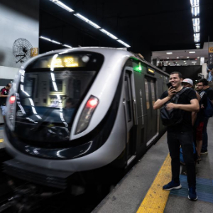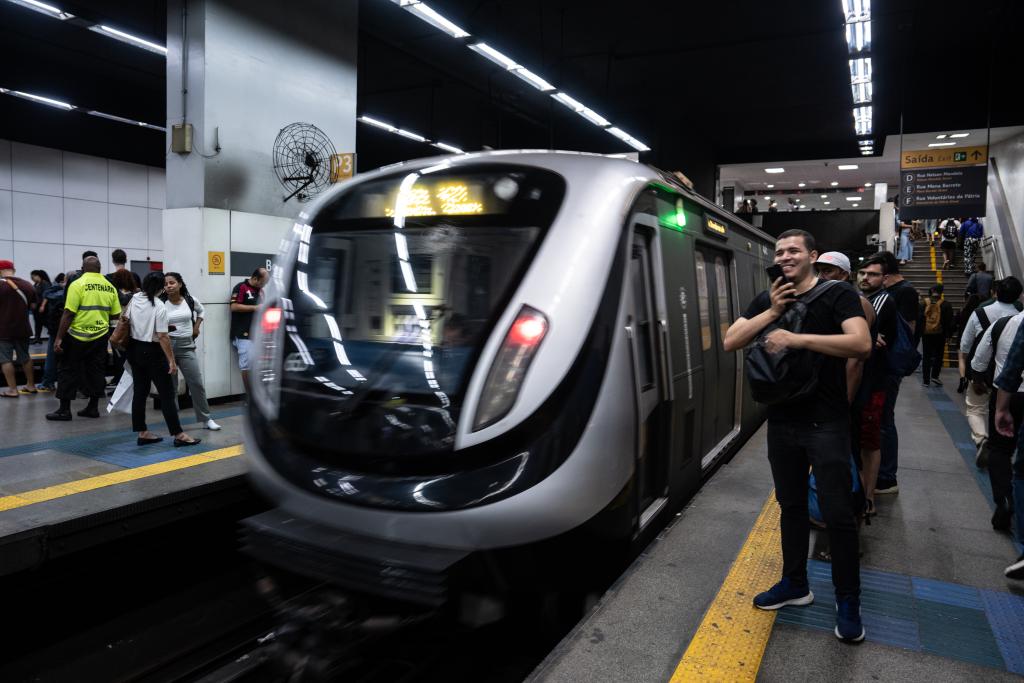 11月13日,在巴西里約熱內盧博塔弗戈地鐵站,一輛由中車長春軌道客車股份有限公司制造的地鐵列車駛入站臺。新華社記者王天聰攝