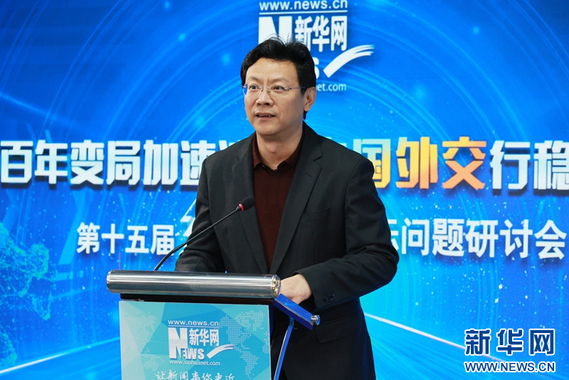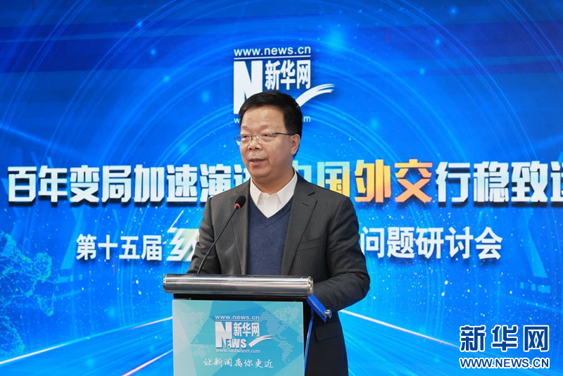 1月2日,新華網第十五屆“縱論天下”國際問題研討會在北京新華網總部舉辦。圖為新華網黨委常委、董事、副總裁劉加文主持研討會下半場“中國外交”主題演講。新華網 楊霽昕 攝