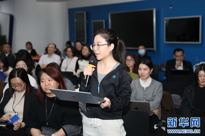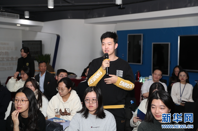 1月2日,新華網第十五屆“縱論天下”國際問題研討會在北京新華網總部舉辦。圖為北京外國語大學學生在提問。新華網 陳杰 攝