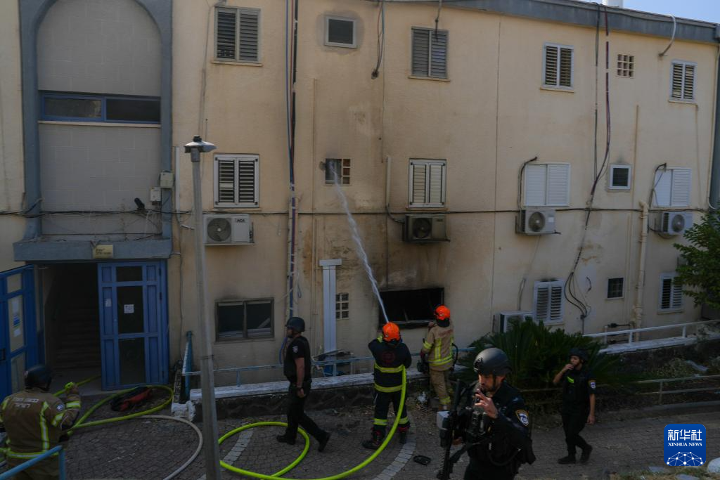 2024年10月9日,以色列北部謝莫納遭到火箭彈襲擊,消防人員撲滅火箭彈襲擊現場的火災。新華社發(阿亞爾·馬戈林攝/基尼圖片社)