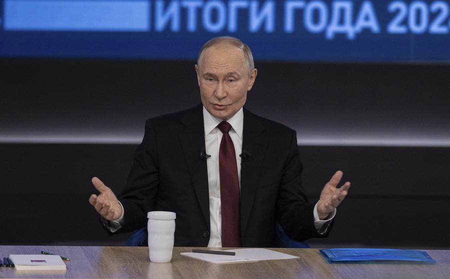 2024年12月19日,在俄羅斯首都莫斯科,俄羅斯總統普京在“年度盤點”活動上講話。新華社記者白雪騏攝