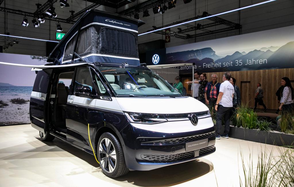 這是2023年8月28日在德國杜塞爾多夫國際房車展上拍攝的大眾汽車全球首發“加州概念”插電式混合動力露營車。新華社記者張帆攝