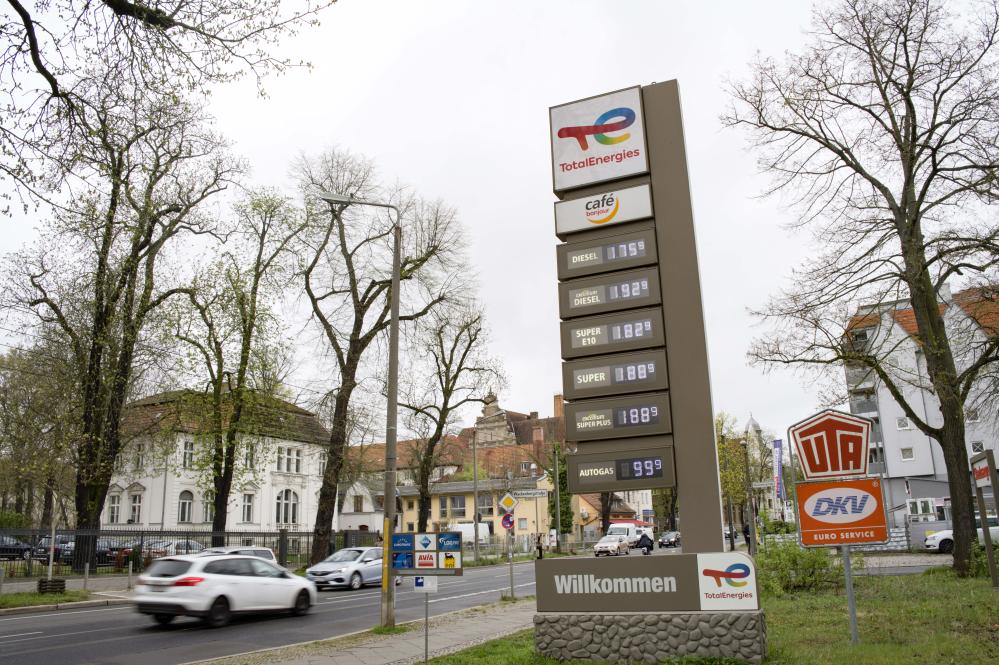 2024年4月3日,汽車駛過德國首都柏林的一家加油站。新華社記者任鵬飛攝