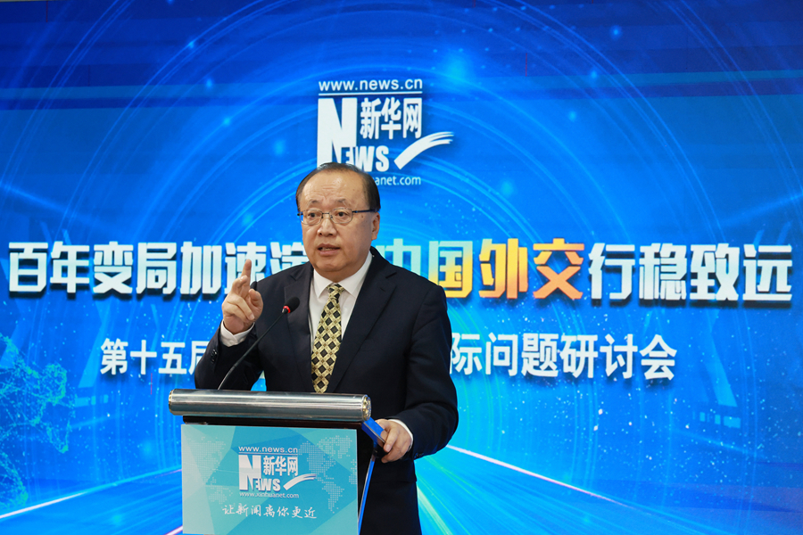 1月2日,新華網第十五屆“縱論天下”國際問題研討會在北京新華網總部舉辦。圖為寧夏大學中國阿拉伯國家研究院院長李紹先在進行上半場主題演講。新華網 楊霽昕 攝