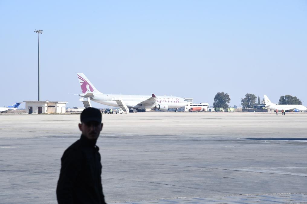 這是1月7日拍攝的一架降落在敘利亞大馬士革國際機場的卡塔爾航空公司飛機。新華社發(蒙塞夫·梅馬里攝)