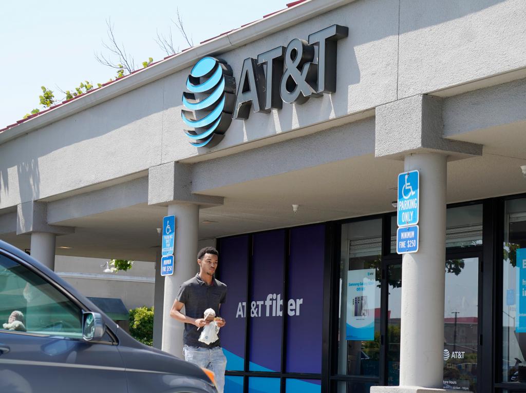 2024年7月12日,行人經過美國加利福尼亞州圣布魯諾的一家美國電話電報公司門店。新華社發(李建國攝)