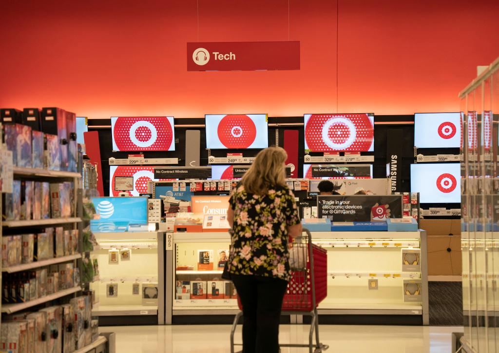 這是2023年10月17日拍攝的美國加利福尼亞州圣馬特奧市一家商場的電子產品銷售區。新華社發(李建國攝)