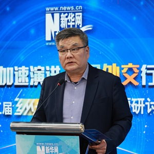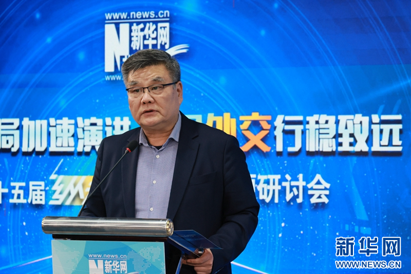 1月2日,新華網第十五屆“縱論天下”國際問題研討會在北京新華網總部舉辦。圖為北京外國語大學區域與全球治理高等研究院教授崔洪建在進行下半場主題演講。新華網 楊霽昕 攝