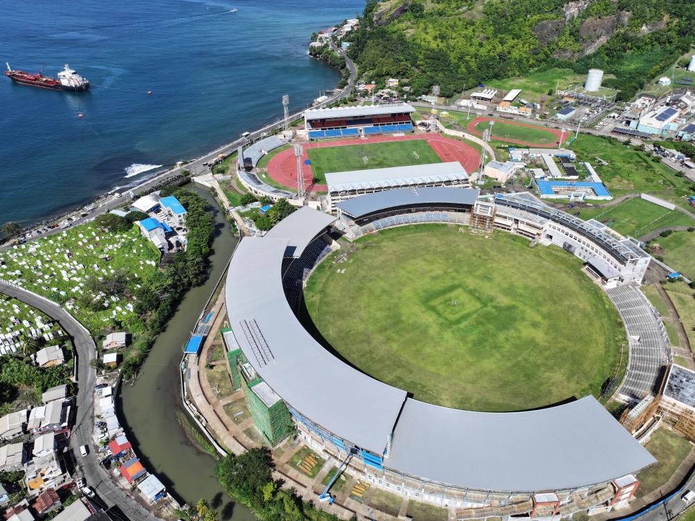 這是1月6日在格林納達首都圣喬治拍攝的格林納達國家板球場(無人機照片)。新華社記者趙凱攝