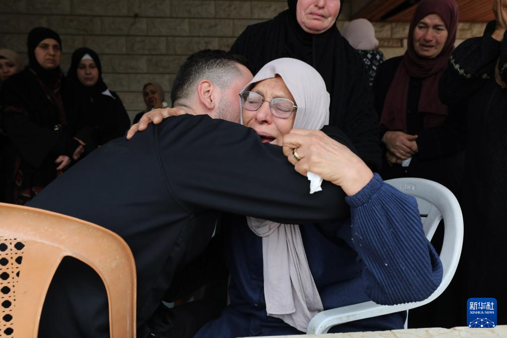1月22日,在約旦河西岸城市杰寧,人們哀悼一名在以軍軍事行動中喪生的巴勒斯坦人。新華社發(尼達爾·艾仕塔耶攝)