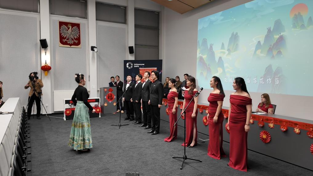 27日,波蘭中國學生學者聯誼會在波蘭華沙社科人文大學舉辦2025“蛇啟新歲 共譜華章”春節聯歡晚會暨中波青年友誼之夜音樂會。為迎接申遺成功后的首個春節,晚會特別邀請了波蘭本地學生及其他國家留學生,共同感受中國春節的喜慶氛圍和文化魅力。
