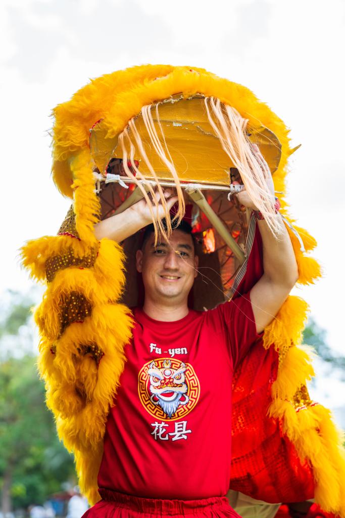 2021年,中國農歷新年成為巴拿馬全國性節日。37歲的巴拿馬人伊萬·胡斯蒂尼亞尼,每逢春節都會和家人一起出門觀看慶?;顒?,尤其是舞獅表演。出于對舞獅的喜愛,兩年前,他與兩個孩子加入擁有50多年歷史的花縣醒獅團。