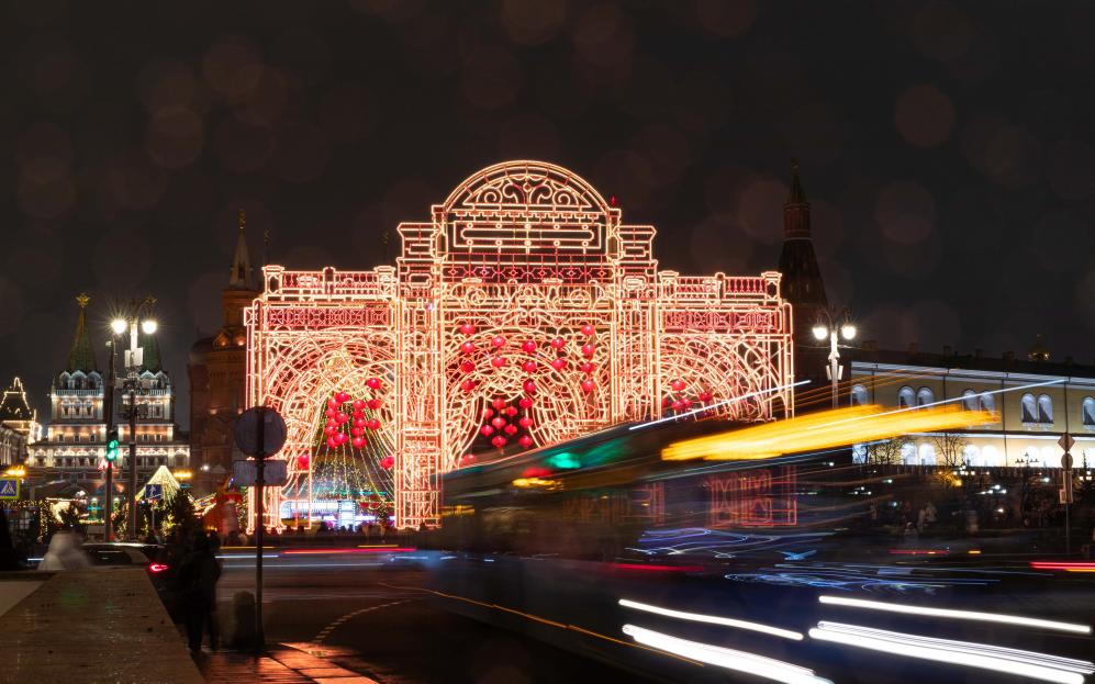 莫斯科春節慶?;顒娱_幕恰逢除夕。在開幕式舉辦地——莫斯科市中心的馬涅什廣場,節慶彩色串燈搭配成百上千的紅燈籠裝點一新;臨時搭建的房屋四周懸掛的“?!弊趾椭袊Y,將“年味兒值”拉滿;美食攤位升騰起裊裊炊煙,飄出的香氣令人垂涎欲滴。