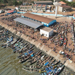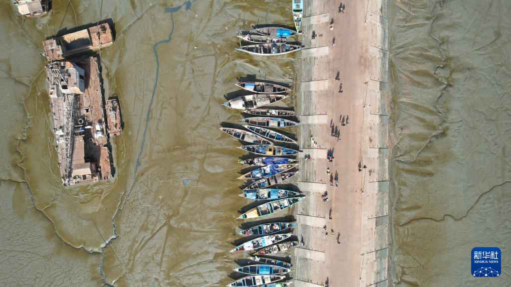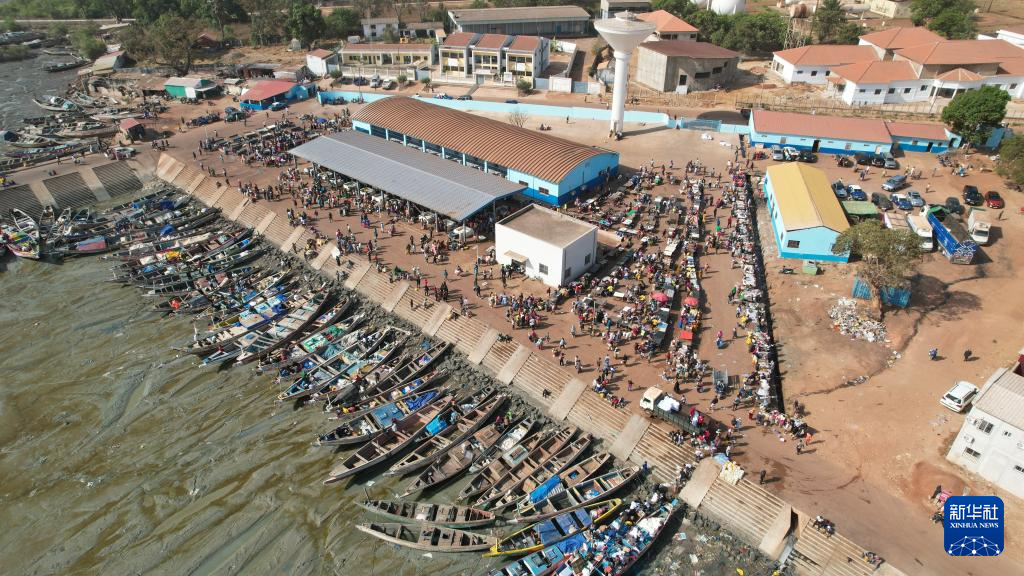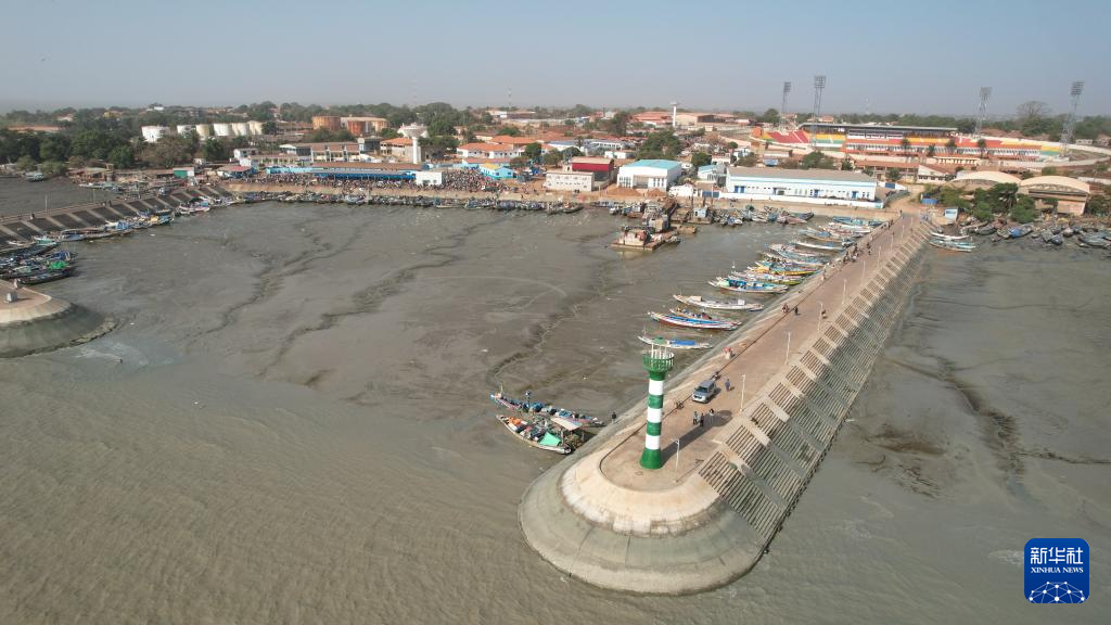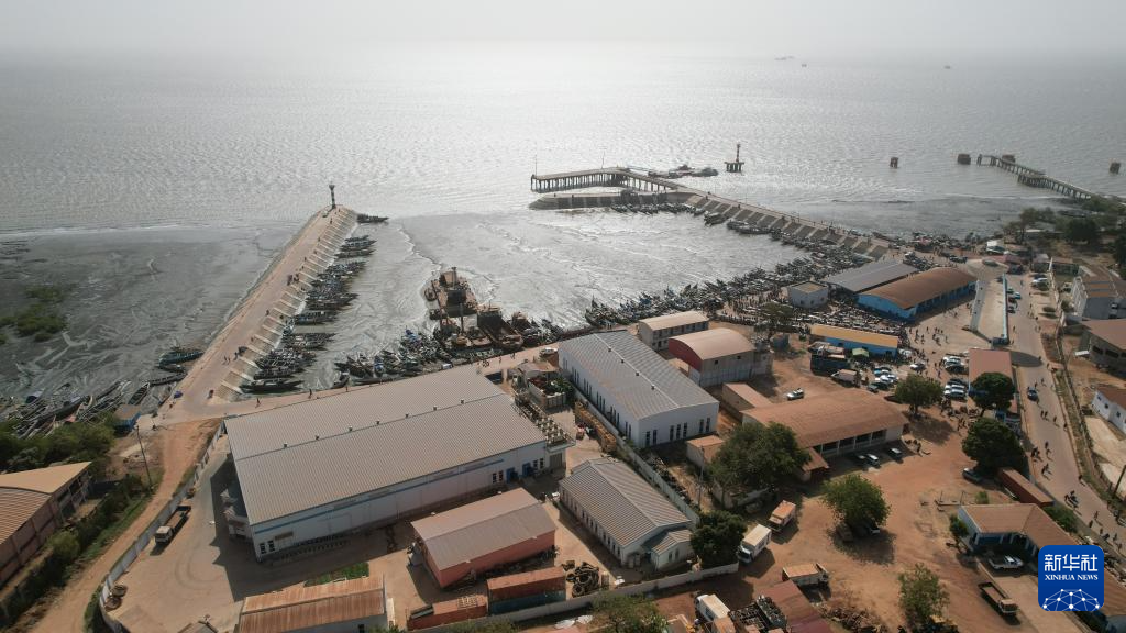這是2月2日在幾內亞比紹首都比紹拍攝的板丁漁業碼頭(無人機照片)。新華社記者 司源 攝