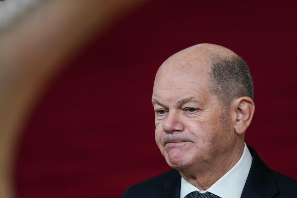 2024年12月19日,在比利時布魯塞爾,德國總理朔爾茨在歐盟峰會前接受采訪。新華社記者彭子洋攝