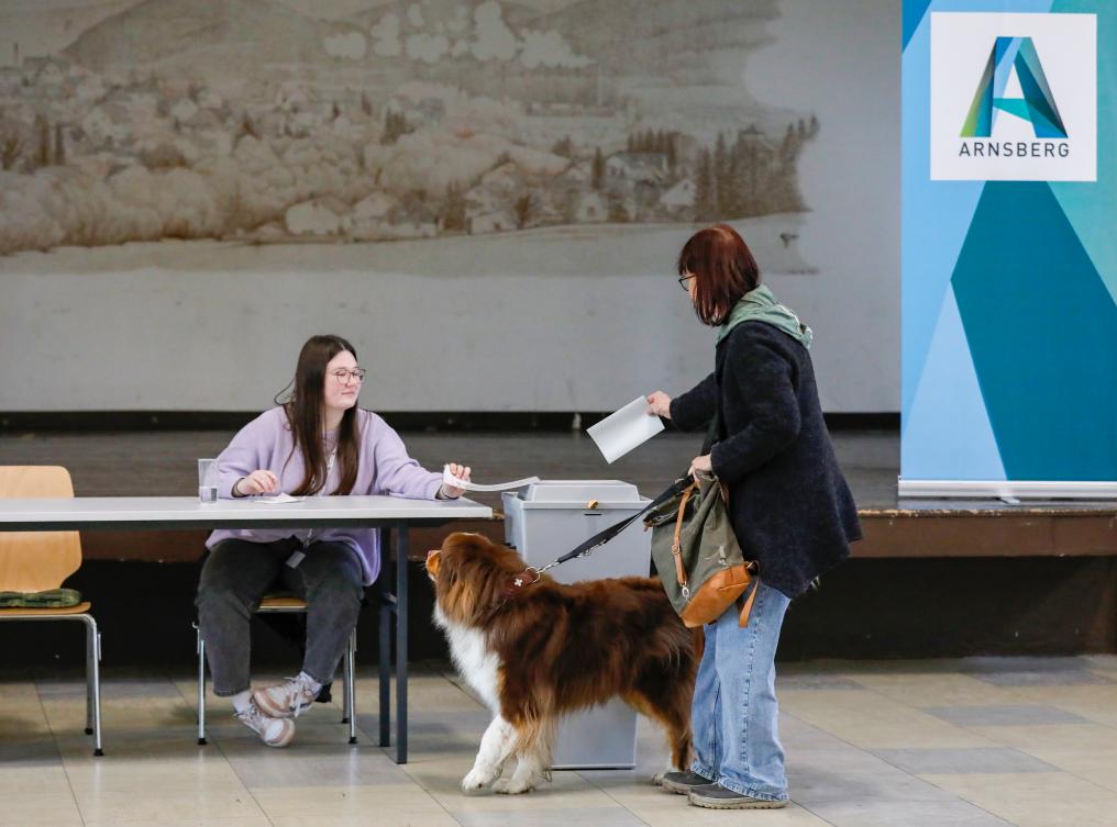 2月23日,在德國北萊茵-威斯特法倫州阿恩斯貝格,選民在一處投票站投票。新華社記者張帆攝