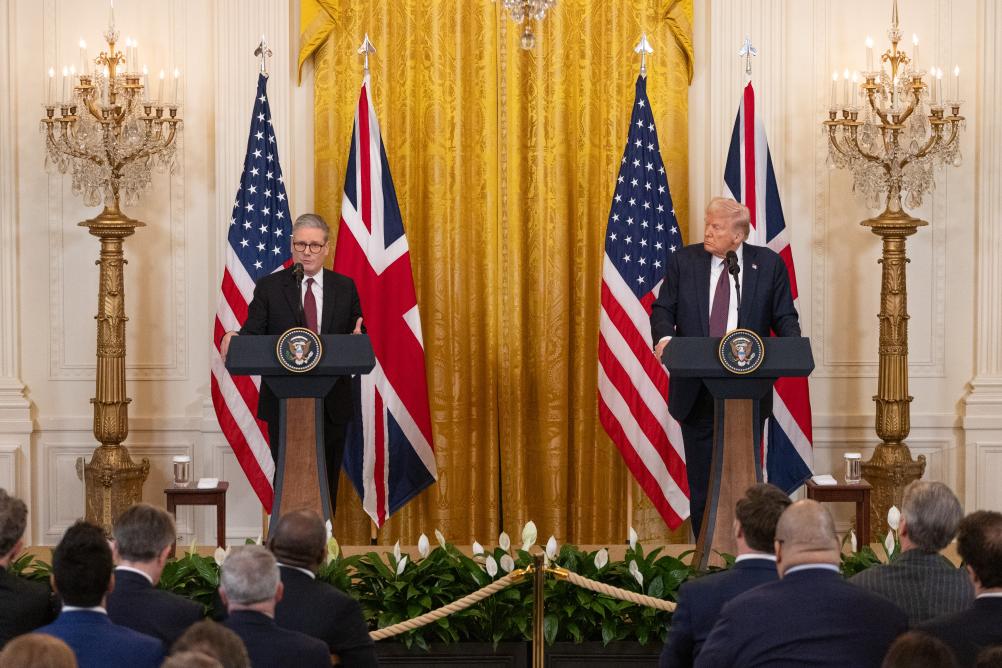 2月27日,美國總統特朗普(右)與英國首相斯塔默在華盛頓白宮出席聯合記者會。新華社記者 胡友松 攝