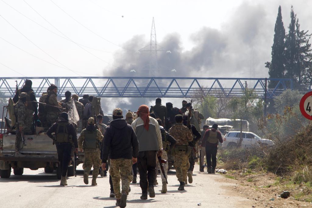 3月7日,在敘利亞拉塔基亞省,安全人員行進在高速公路上。新華社發