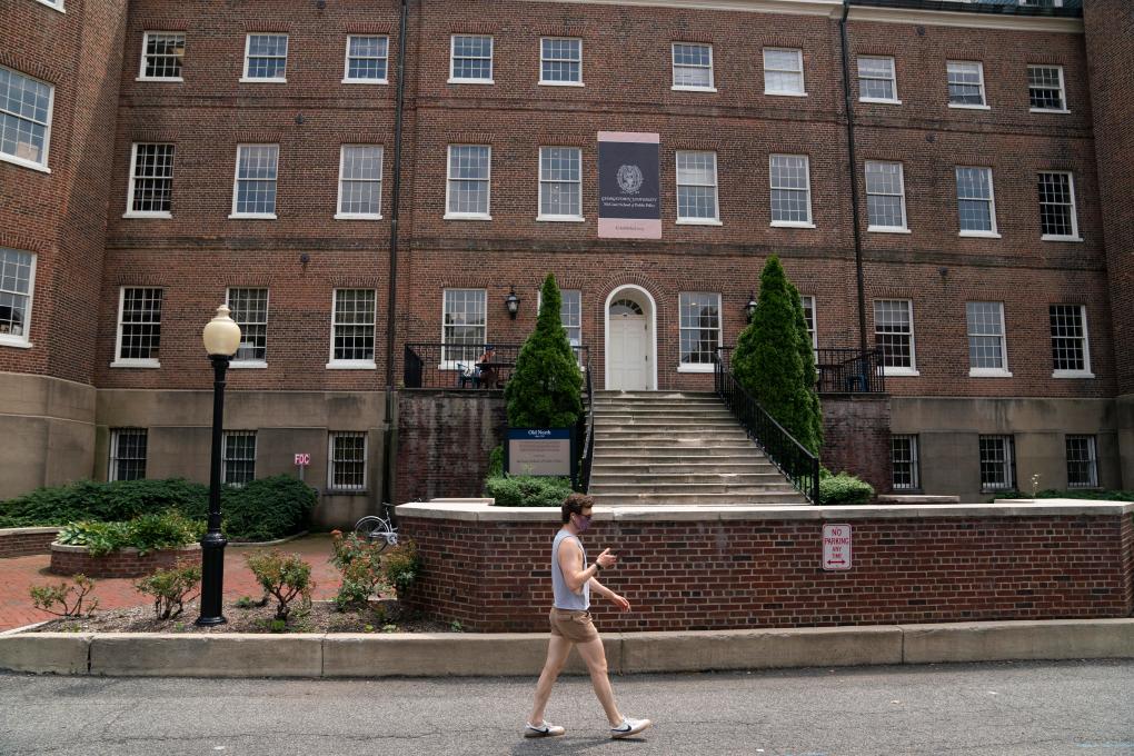 2020年7月7日,一名男子走在美國華盛頓的喬治敦大學校園內。(新華社記者劉杰攝)
