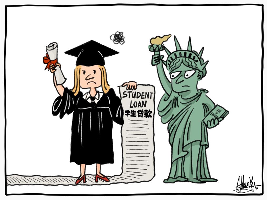 在美國,昂貴的高等教育費用和隨之而來的大額學生貸款已成為很多人的“不能承受之重”。有的人甚至“定期賣血去付房租和學生貸款”,還有的人“退休后仍在還學生貸款”……學生貸款成為不少美國人“一生的枷鎖”。