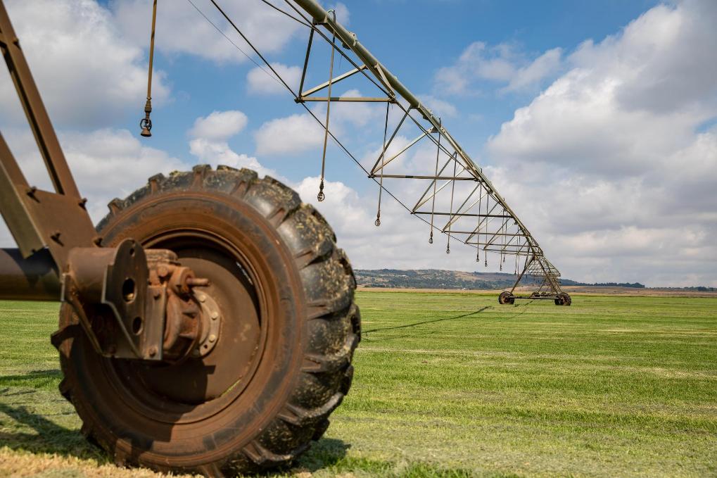 這是2024年4月12日在南非約翰內斯堡郊外拍攝的指針式噴灌設備。新華社記者張譽東攝