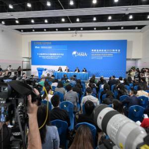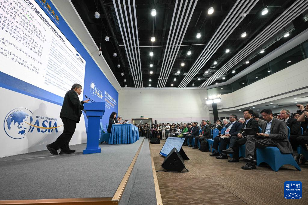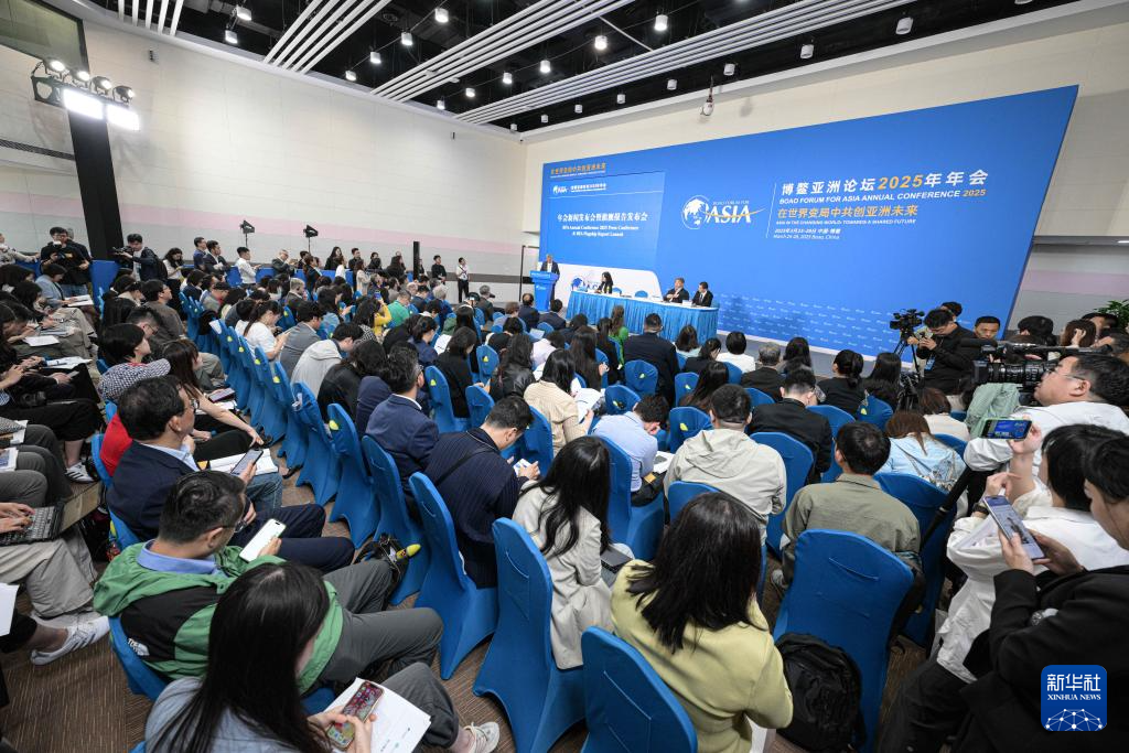 3月25日在海南博鰲拍攝的博鰲亞洲論壇2025年年會新聞發布會暨旗艦報告發布會現場。