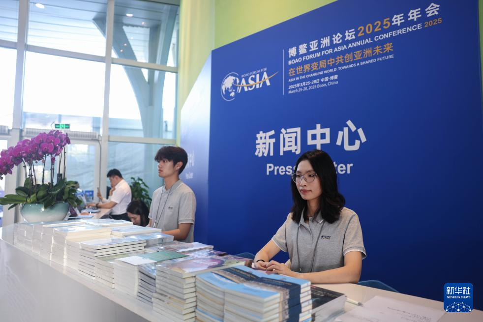 3月24日,工作人員在博鰲亞洲論壇新聞中心工作。