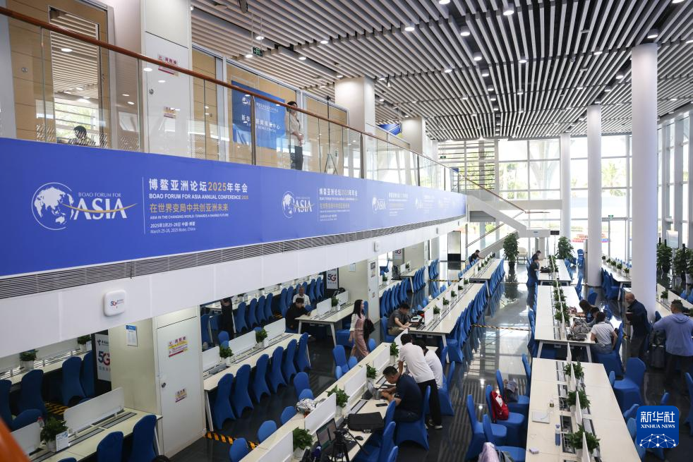 3月24日,記者在博鰲亞洲論壇新聞中心工作。