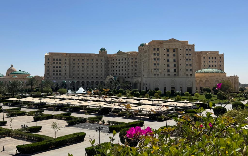 美國和俄羅斯代表團2025年3月24日在沙特阿拉伯首都利雅得舉行會談。圖為當天拍攝的美俄代表團舉行會談的酒店。新華社記者王東震攝