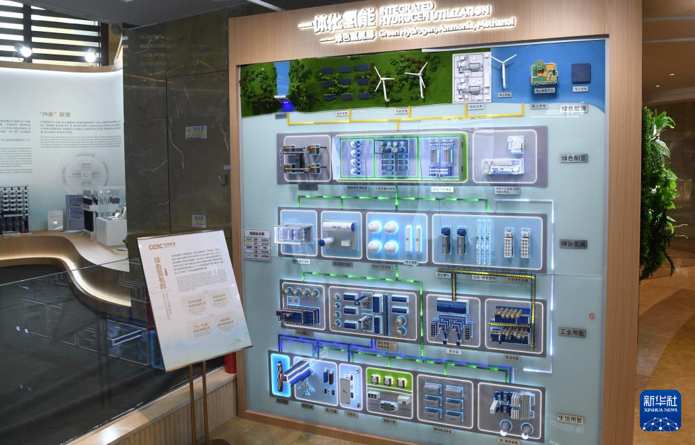 這是3月25日拍攝的中國能建在博鰲亞洲論壇2025年年會展示的中國能建綠色氫氨醇沙盤。