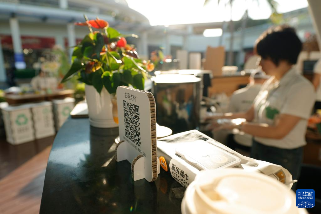 3月26日在博鰲亞洲論壇2025年年會會場外的休息區拍攝的支付碼。支付碼印在可再生紙制作的紙板上。