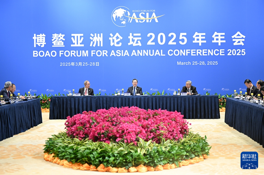 3月27日,中共中央政治局常委、國務院副總理丁薛祥在海南博鰲與中外企業家代表座談。新華社記者 李響 攝