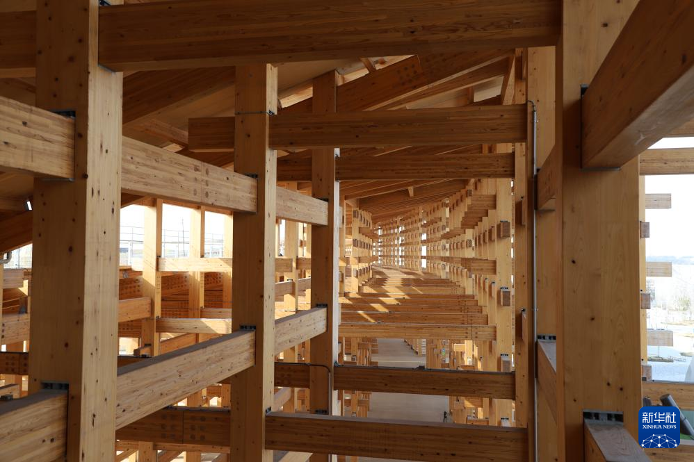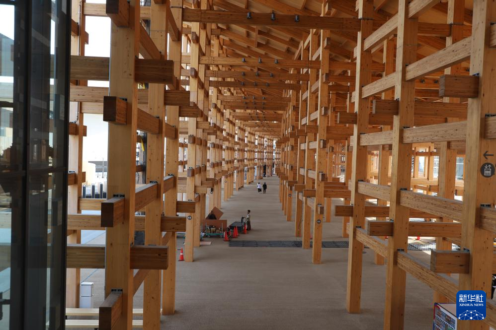 為吸引游客,大阪世博園區還在空間設計方面做了獨特嘗試。其中最引人注目的莫過于標志性的“環形大屋頂”結構。這座封閉圓環狀的木質屋頂將各國展館環抱在內,一條步行通道連接各區域。