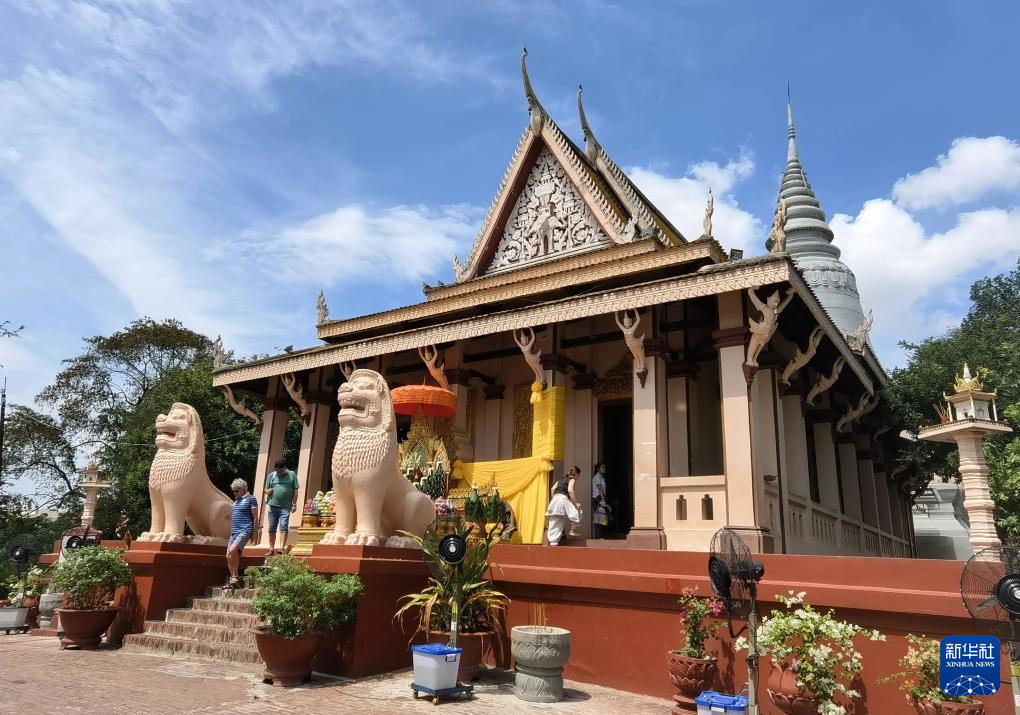 4月14日,當地居民在柬埔寨金邊的塔山寺為新年祈福。