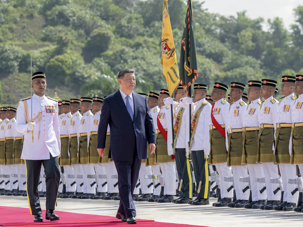 4月16日上午,易卜拉欣在馬來西亞國家王宮廣場為習近平舉行隆重歡迎儀式。