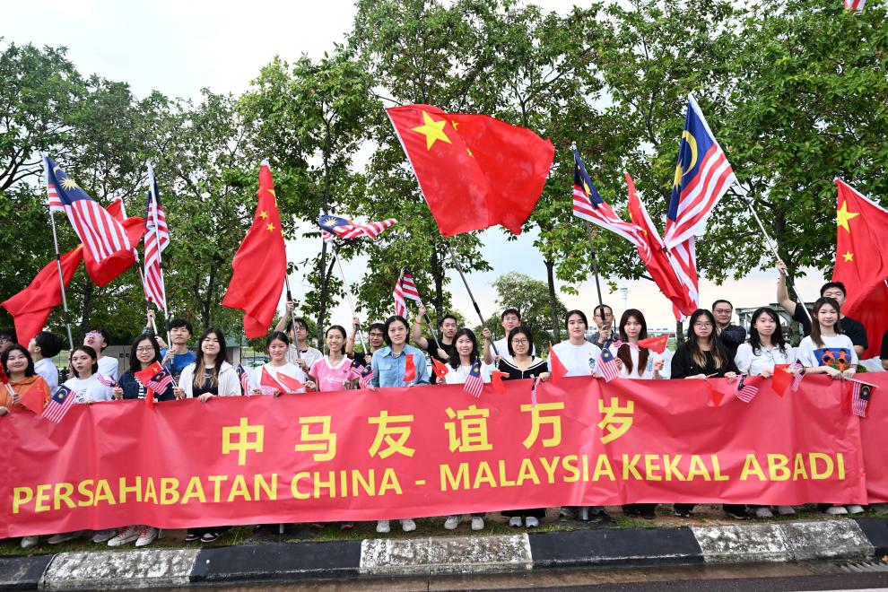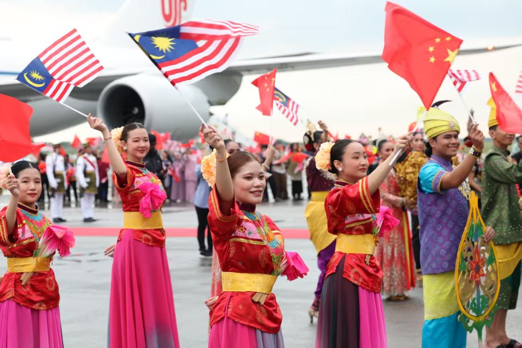馬來西亞兒童向習近平獻花,馬來西亞青少年表演富有當地特色的舞蹈,揮舞中馬兩國國旗,熱烈歡迎習近平到訪。