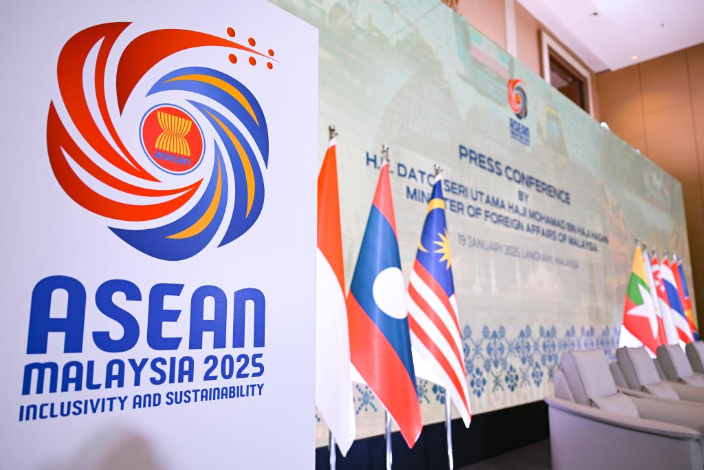 這是1月19日在馬來西亞吉打州蘭卡威拍攝的東盟國家外長非正式會議新聞發布會現場。新華社記者 程一恒 攝