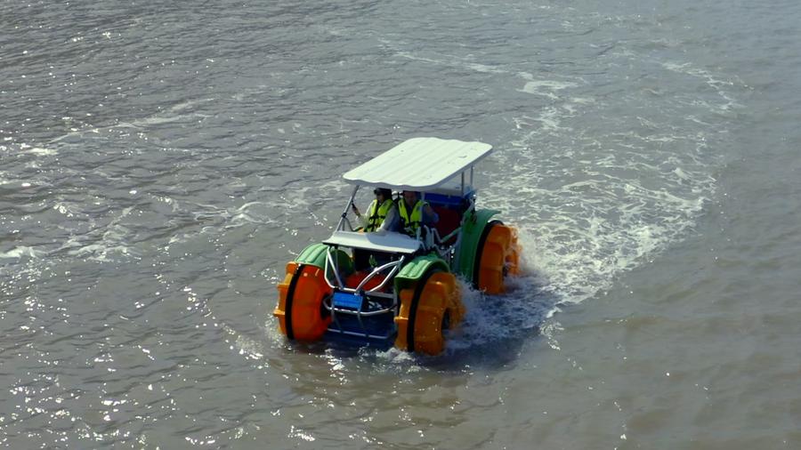 島上的綠色交通出行方式多種多樣,新能源觀光車、電動自行車、新能源出租車等出行選擇多種多樣。海灘上,電力驅動的游樂設施讓人流連忘返。
