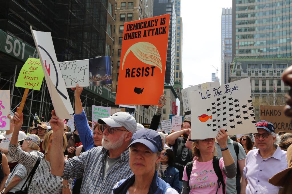 僅4月,全美就發生抗議活動逾千場,覆蓋全部50個州。4月19日,美國多地舉行抗議活動,首都華盛頓、紐約、舊金山、波士頓等城市的民眾走上街頭,譴責特朗普政府驅逐移民、政府大規模裁員、加征關稅等政策侵犯公民權利、違反憲法。