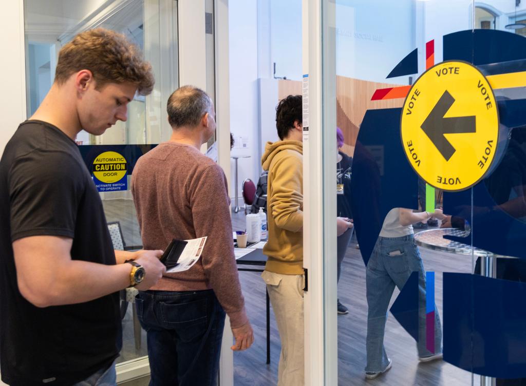 4月28日,選民在加拿大多倫多一處投票站排隊投票。新華社發(鄒崢攝)