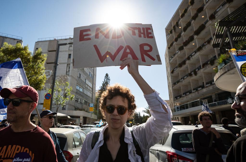 3月19日,人們在位于耶路撒冷的以色列總理府附近參加集會。當日,耶路撒冷爆發大規模民眾集會游行,抗議以色列恢復對加沙地帶的軍事行動。新華社記者 陳君清 攝
