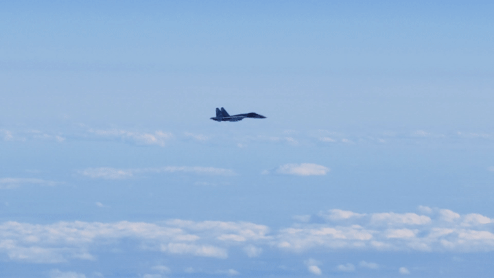 習近平乘坐的專機進入俄羅斯領空后,俄羅斯空軍戰機升空護航。
