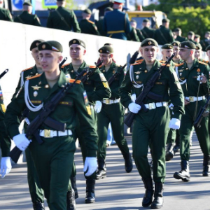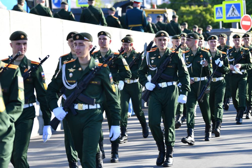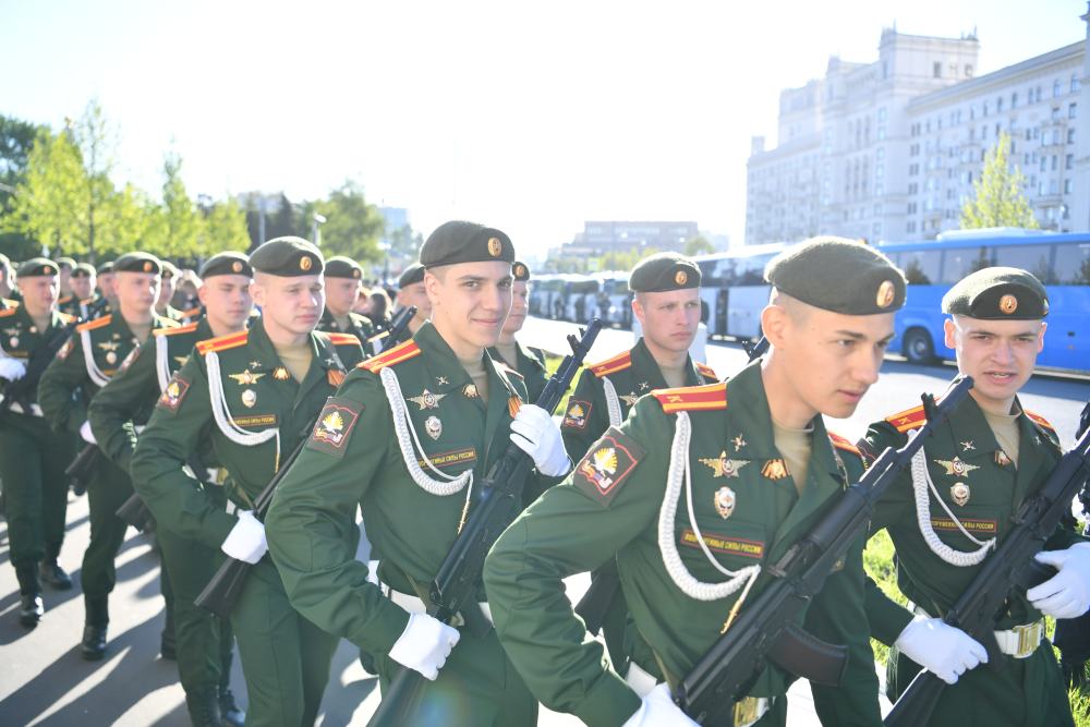 ↓5月9日,在俄羅斯首都莫斯科,士兵集結準備參加紀念蘇聯偉大衛國戰爭勝利80周年閱兵式。