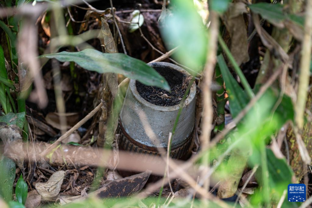 這是5月11日在剛果(金)東部小鎮薩凱周邊地區的一處農田拍攝的尚未被處理的啞彈。該區域目前有多枚沖突中遺留的炮彈未被妥善處理。新華社記者 鄭揚子 攝